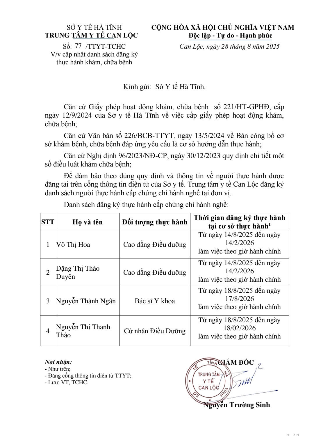 Cập nhật danh sách đăng ký thực hành khám, chữa bệnh