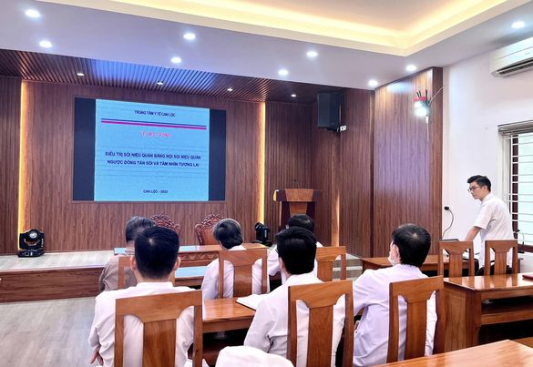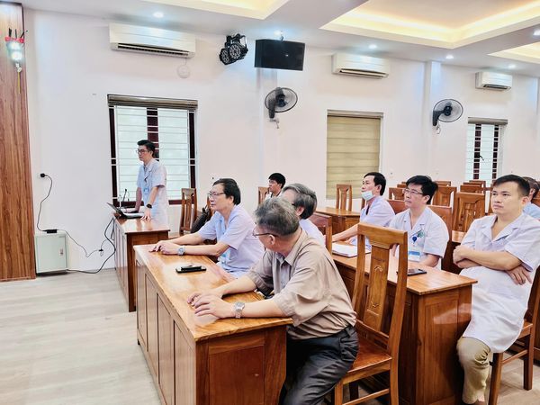 Với mục đích nhằm nâng cao chất lượng chẩn đoán điều trị. TTYT tổ chức sinh hoạt chuyên môn hàng tuần đánh giá việc thực hiện quy chế điều trị, quy chế sử dụng thuốc hợp lý, an toàn, theo dõi các phản ứng có hại và rút kinh nghiệm các sai sót trong dùng thuốc,giới thiệu các đề tài khoa học... Sinh hoạt chuyên môn tuần này với nội dung " áp dụng khoa học kỹ thuật trong điều trị sỏi niệu quản bằng nội soi tán sỏi nguồn năng lượng Laser ".