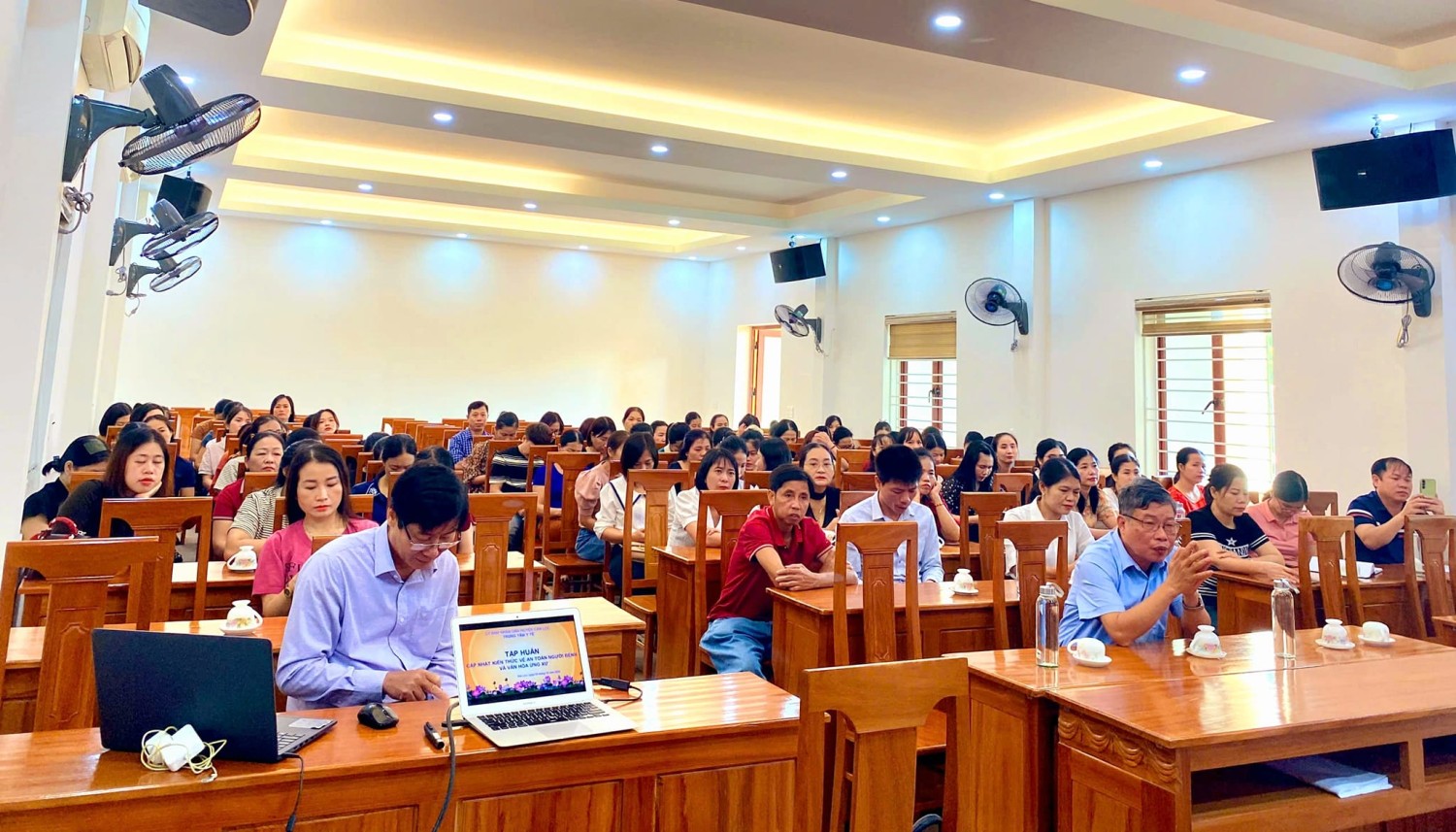 Tham gia lớp tập huấn có Thạc sỹ Nguyễn Viết Thắng - Phó trưởng phòng Nghiệp vụ sở Y tế Hà Tĩnh, Bs. Nguyễn Đức Ngọc - Phó giám đốc Trung tâm cùng toàn bộ Điều dưỡng, Hộ sinh, KTV, dược sỹ, hộ lý và nhân viên lao động tại Trung tâm Y tế.