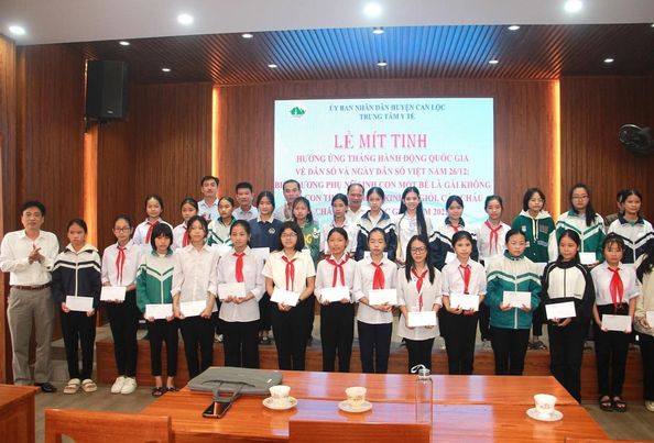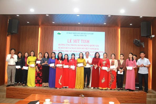 Chiều 29/11, tại Hội trường Trung tâm Y tế, UBND huyện Can Lộc, Trung tâm Y tế phối hợp với Hội Liên hiệp phụ nữ, Phòng giáo dục Đào tạo và các ban ngành đoàn thể tổ chức lễ hưởng ứng Ngày Dân số Việt Nam (26/12); biểu dương các gia đình sinh con một bề là gái, làm kinh tế giỏi và các cháu gái chăm ngoan học giỏi.