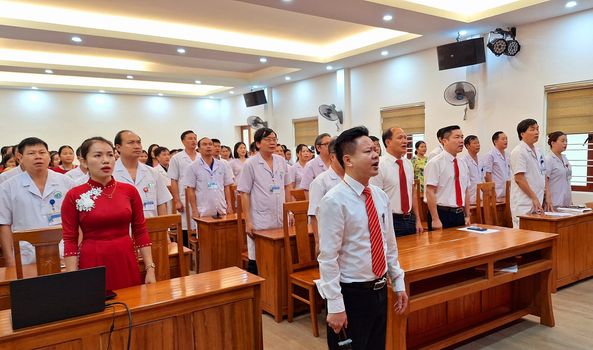 Sáng nay (5/9), Trung tâm Y tế huyện Can Lộc long trọng tổ chức lễ chào cờ tháng 9. Tham dự lễ chào cờ có Ban giám đốc, lãnh đạo các khoa phòng và cán bộ công nhân viên. Bác sĩ CKII Nguyễn Trường Sinh - Giám đốc chủ trì buổi lễ.