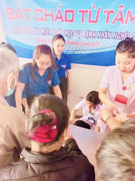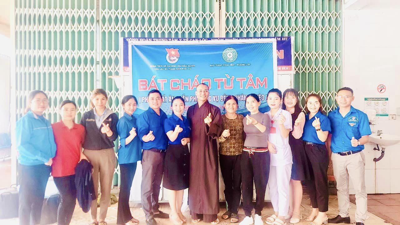 Sáng nay (16/3) Chi đoàn TTYT phối hợp với chi đoàn Thị trấn Nghèn, câu lạc bộ Thanh niên Phật tử và Đảo tràng chùa Vĩnh Thượng Lộc tổ chức phát cháo thiện nguyện tại Trung tâm Y tế huyện Can Lộc.