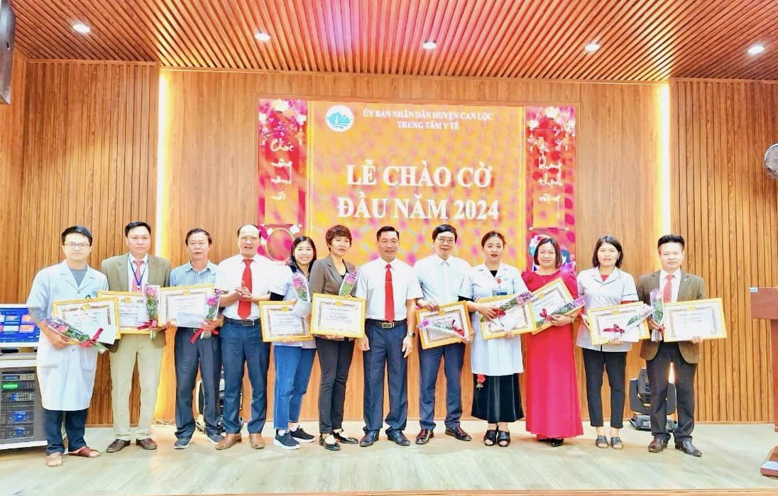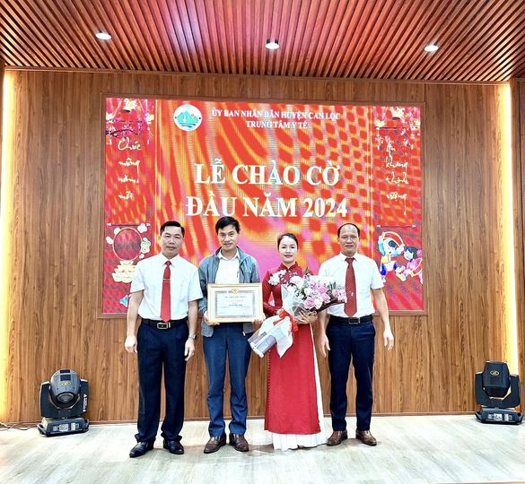 Sáng nay (02/01/2024), Trung tâm Y tế huyện Can Lộc tổ chức lễ chào cờ tháng 01. Tham dự lễ chào cờ có Ban giám đốc, lãnh đạo các khoa phòng và cán bộ công nhân viên Trung tâm. Bác sĩ CKII Nguyễn Trường Sinh - Giám đốc chủ trì buổi lễ.