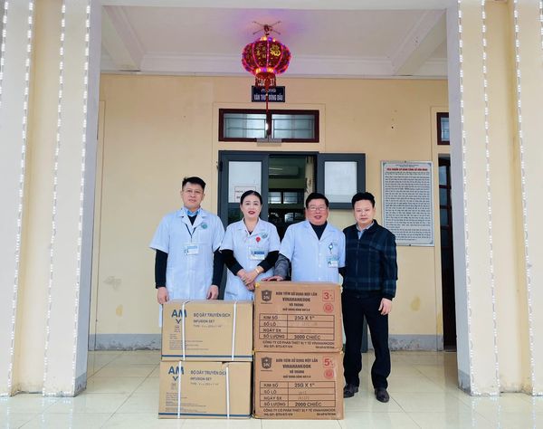 Trung tâm Y tế đã nhận được món quà ý nghĩa từ nhóm bạn của BS. Nguyễn Thị Hương - Phó Giám đốc đã tặng Trung tâm Y tế 5000 bơm kim tiêm, 1000 dây chuyền.